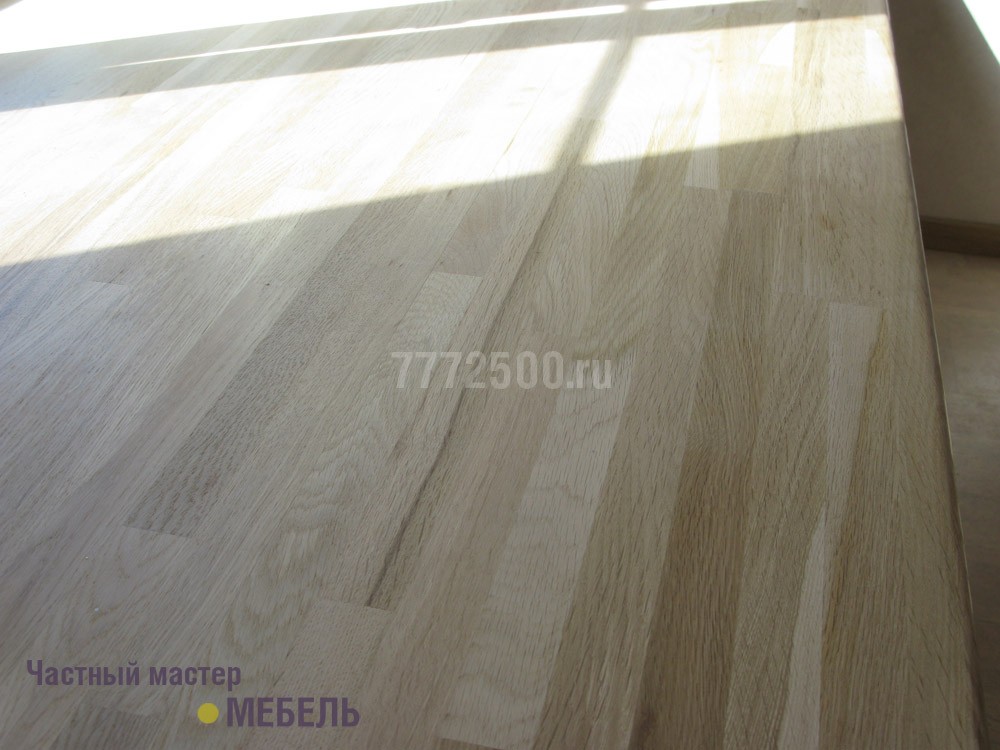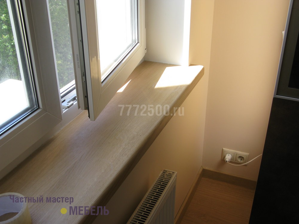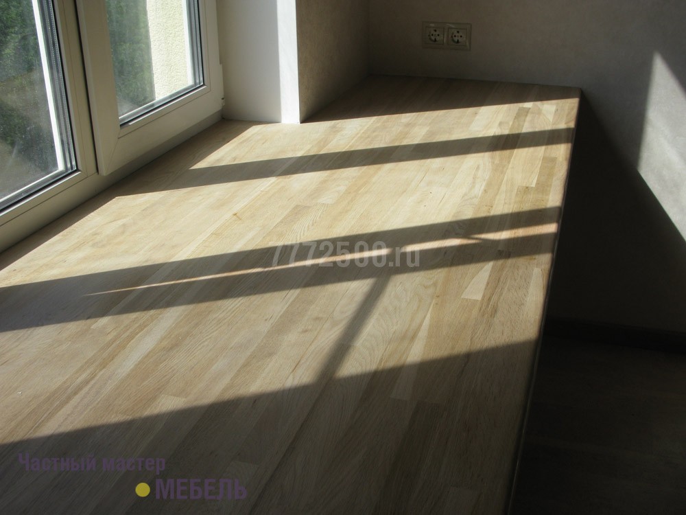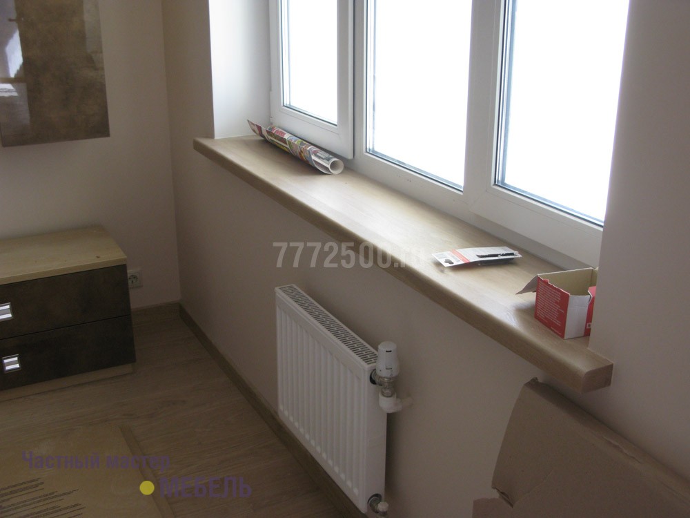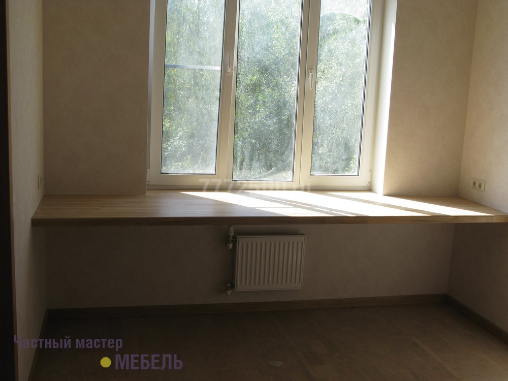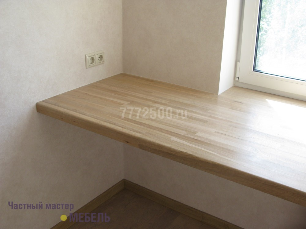 Подоконники и стол-столешница выполнены из массива дуба. Пропитаны маслом. Стояла задача сделать стол без видимых креплений к стене.